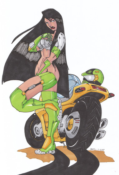 It's been a long time since the last work I post here...OK, this character is a biker racer I did for a brazilian magazine Pin Up. I drawed her short story and they asked me to make an Pin Up illustration for an event at Rio de Janeiro and here it is! I hope you all enjoy this art because I did!