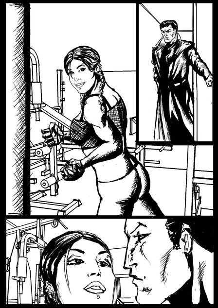 Like the other pages I used Bic Pen (yes, the cheapest pen you can find around but the best to make the style I wanted) to make the traces of everything but Felícia, the protagonist. You'll notice that she's traced with nankin and a more smoother rendering than the rest of the illustration. For it I used mechanical pencils and Photoshop. The rendering of the rest of the pages was done with Photoshop too. I wanted to make her more "divine" at the looks of reader to represent her new state after her transformation. Now she is livin' the way she wants and the rest of the world seems like "corrupted" in some way to her.