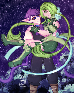 I added the background for free because as I was drawing these two I just wanted to draw a space background. But if you want it off then Ill remove it XD