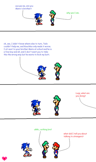Mario tells a riddle to Sonic, that could be Sonic as the answerI may make more Mario and Sonic comics like my early days of Deviantart