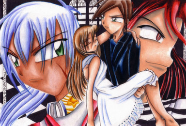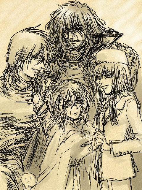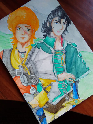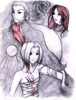 The colouring on Emilian (background) was a little tricky because I wanted him to get darker. On the left, you can see him as a magician, with his sister Ioana standing in the front, on the right he has his grey hair, indicating that he is a vampire. Victor on the right also is one (if u can remember that? XD)