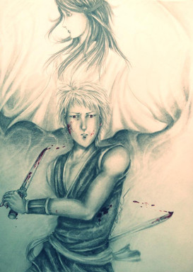 As for the topic...I wanted him to "stand" between the love to his sister and so to his entire family on the left, and his hate against Victor and his men on the right.