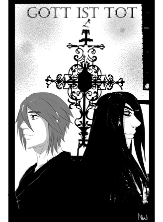 The text you can see in the middle is a quote from In Flames. Their song "The Chosen Pessimist" was the inspiration for this artwork and also is Emilian's character song.