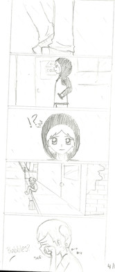 I don't have a paint program, so I couldn't fix this up. Sorry peoples!Anyway, this is my drama teacher's comment about a spit bubble he made blown way out of proportion. The person with the hat is me and the other person is Akane-sama. Both are badly drawn. -laughs-