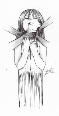 So...I was drawing this really pretty girl with a turtle neck, but then at some point she started crying and the turtle neck turned into a noose. True story.-Pen
