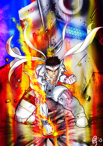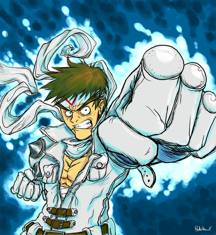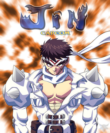 This is a picture of Capcom's Jin Saotome.I wasnt happy with the original Jin's face so I redrew his head in Photoshop 7.