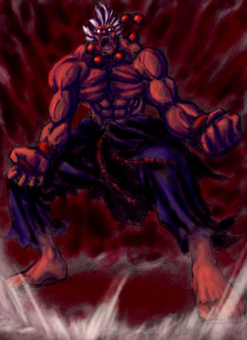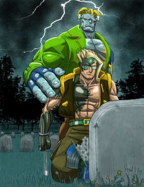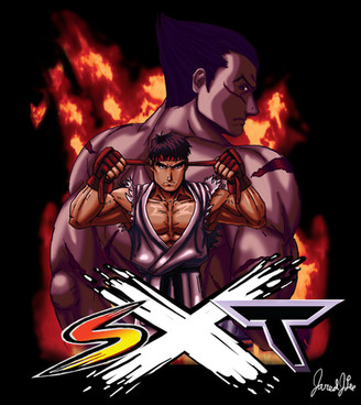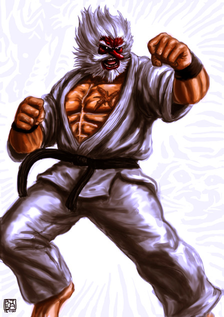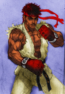 This is a picture of Remy, and Ryu from Capcom's Street Fighter III: Third Strike fighting.Ryu rushes in with a big right hook, and lights out.