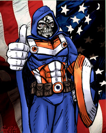 Using wire mesh, metal wire, tape, Super Sculpey, and acrylic paint I made The Taskmasters merc mask.The references for the mask where all different. If you have the mini series, of the Deadpool, & Agent-X appearances like I do you will notice that depending on the artist the mask looked different in each panel (Udon's falt).