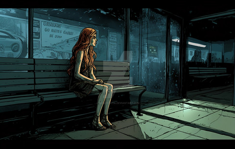 God i love this. First of all, I love your comic-book style. I'm guessing it is drawn then digitally colored? Anyway I love your style and how all your work tells such a story. This one is my favorite. I really feel the mood there. I wish I was sitting there with her drinking a cup of coffee and having a smoke. Man thats livin.