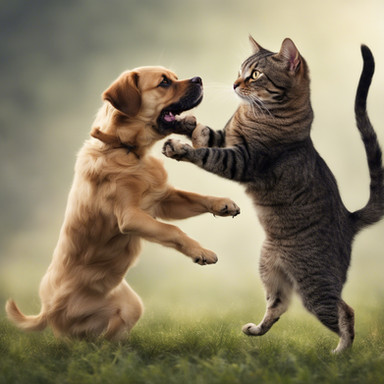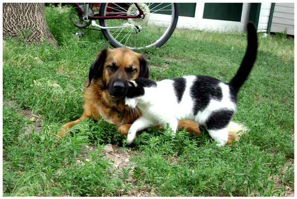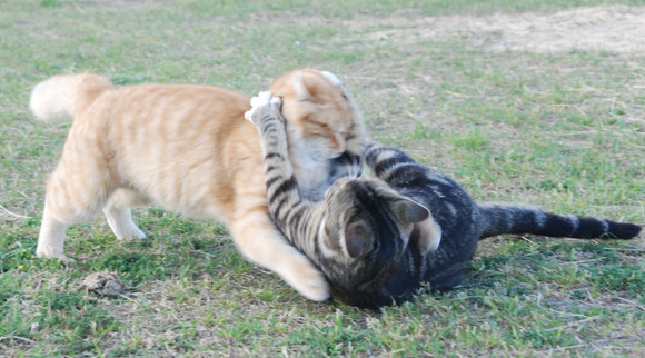 "Hey, watch it, buddy! I know cat-fu!!!" That's a cute shot. ^_^