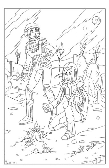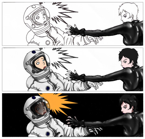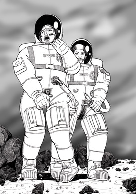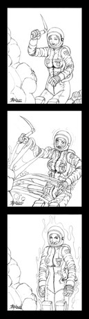 Commissioned by ,Β detailed sketchΒ sequence of Kendra ripping out badge from another astronaut.Related content