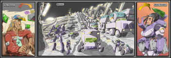 -the giant mech with the large back cannons is an eventual solarm army unit to be revealed. its inspiration is the Macross "Monster" destroid