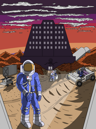 With a colony established shortly after the Lunar launch station was built, Mars was the first human attempt with permanent interplanetary colonization and terraforming. Today its first settlement, Elontown, has grown to be a massive metropolis and is the capital of Mars. The economy is principally held up with companies manufacturing weapons, armor, and vehicles. Martians are a practical enterprising people who enjoy many freedoms, such as bearing arms, and have adapted to live in the world's partially terraformed environment. Melting the ice caps and underground rivers have provided some of the planet's water needs, but the atmosphere is still dry and oxygen thin; only breathable after years of adaptation or mechanical assistance.