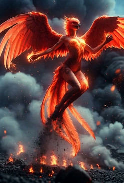 daGreek311 - A mythical phoenix rising from ashes, fiery wings [🤖]