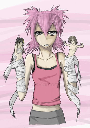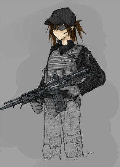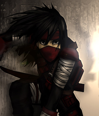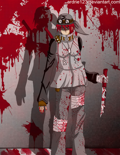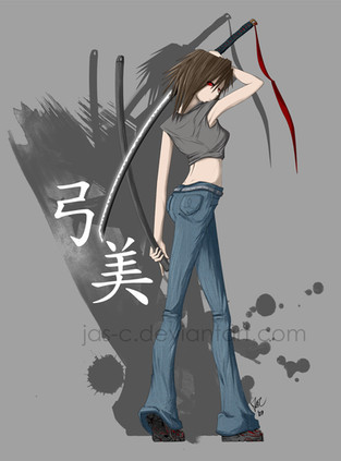 Yumi in weapon state with a dark shade of clothes with some bloodyumi (c) me