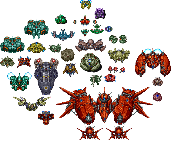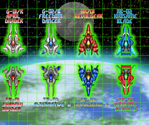 Chris and Rosalie- Both operate a two-manned unit called the Nijuubara, based on Battle Garegga and Ibara. The slowest of the ships, but the most armored, reactively releasing a burst of energy to enemies upon contacting bullets. Adding its drones that wield eneny weapons, wide arc, and great firepower, it's more than just a large target.