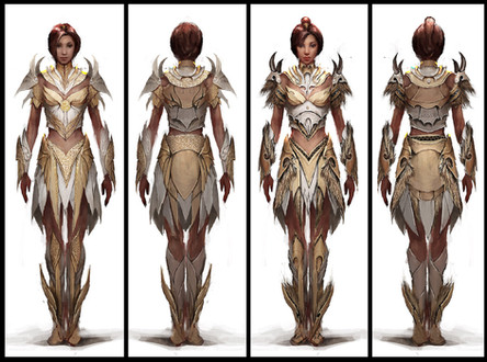 You have some truly wonderful character/outfit/armor design ideas. Love the progression shown in this set! The amount of small, eye-catching detail is well-balanced with the overall design. And the fact that it somehow seems like a utilitarian design rather than a flashy costume is great.