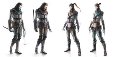 IDK, to me the left one isn't overloaded w/ armor, and dosen't show too much skin, yet retains a stealthy ninja, close combat, feel.