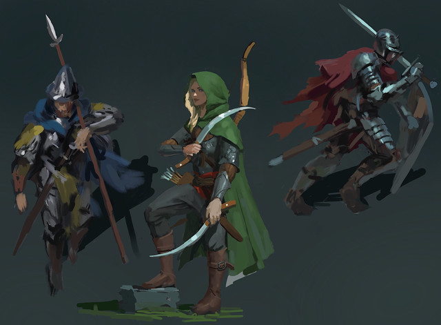Ahh been away for so long! Sorry about that, I was caught up in a lot of work so didn’t have time to do much personal stuff these past few months.Anyway, here are some characters that Ive been working on, I plan on doing a series of classic RPG character archetypes - so far we have a sell-sword type character, a knight, a ranger and mage is probably up next. Let me know if there are any other's you would like to see!