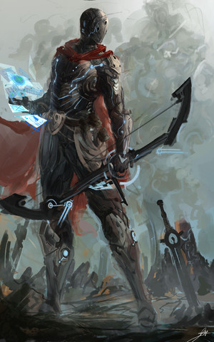 Excellent art work. The character look epic! I like his outfit and his armor. Wonderful coloring. Well done!