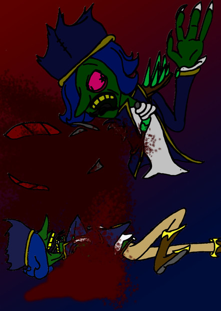 I actually kinda wanted him to have the blue stuff as foam coming out of his mouth.