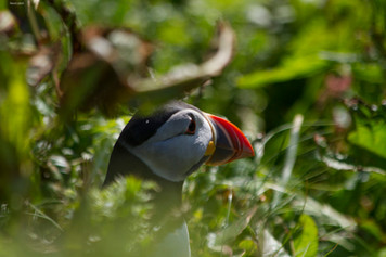 Wonderful photo! Puffins are such odd birds! We went on a cruise to Alaska last year, and one of the excursions we took was through the Kenai Fjords. We saw lots of birds including Puffins and Common Murrs. Watching these guys flying is a hoot, because unlike most birds, they are heavy-boned since they are divers. So they look quite comical when taking off from the water.