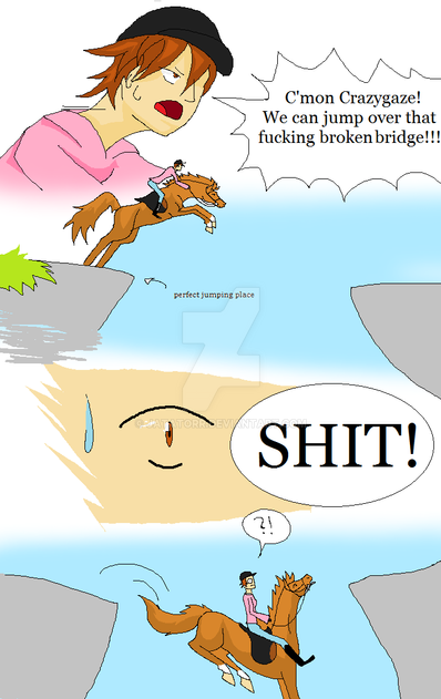 This is kinda what happened to me in real life xD I was going over a jump with my horse and as soon as she landed she started bucking and I fell over her head