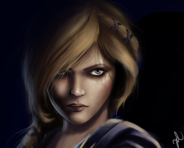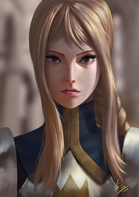 Her old ultimate's name was better.I tried dramatic lighting but it didn't come out dramatic as I wanted it to. And I discovered that I really don't like painting blonde hair. :I