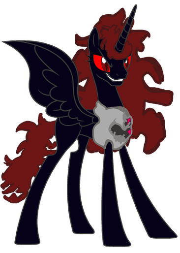 Chrysalis" *Blinks and lights he horn* you dare challenge the queen of the changelings? Fine. *Green falmes engulf her and a dark grey dragon takes her place* lets dance. *scraps her claws on the floor*