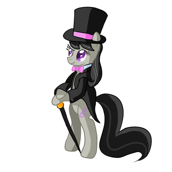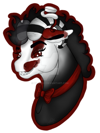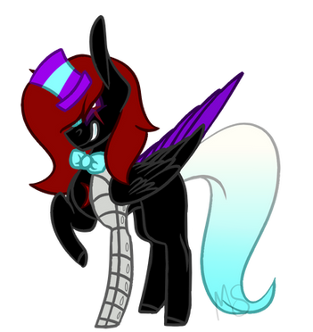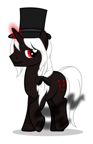 She looks like the girl version of Freddy...(FNAF) Top hat,brown and black mane,spooky,glowing eyes.