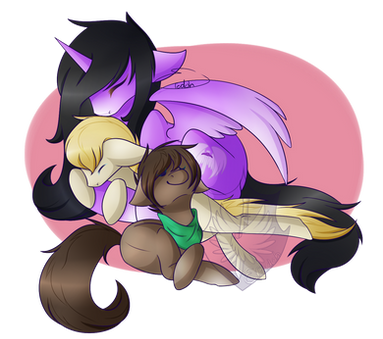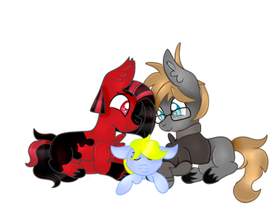 Candy Cane (shown on the far left) took good care of him and although upset over Obsidian's death didn't really change much in how she took care of Onyx and his older sister Amber Rose (not shown) since she was "numb" to death do to working as a nurse in the emergency room hospital in Manehatten. However after Onyx went in for his own heart surgery at the age of 9 Candy Cane simply vanished. It is unknown if she committed suicide, ran off in grief, or abandoned him and his sister. No one has seen her since and Onyx now age 19 (or 39 if he has kids) holds out little hope in finding her. There have been clues coming in until his late twenties of what happened to her but after 20 years they declared her legally dead since no one could find anything that could possibly lead them to her beyond "sightings" of a pink mare with a striped mane from all over Equestria.