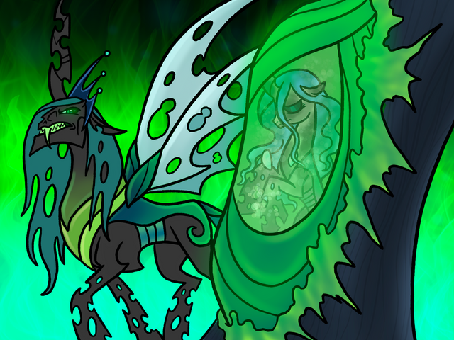 For example, in THIS omake I wrote much earlier [link] , I even portrayed Queen Chrysalis sympathetically as someone who is capable of love and care of those Changelings beneath her despite her status, instead of being a sociopathic tyrant.
