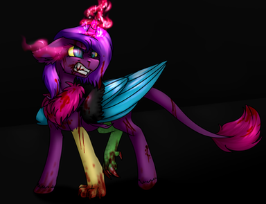 The pain was now constant and intense as more grotesque changes took place. She wasn't able to focus, her eye sight kept blurring and going black around the edges. She looks down at her hooves trying to steady herself when she saw her skin was sickly pale and in places appeared to be MELTING off...