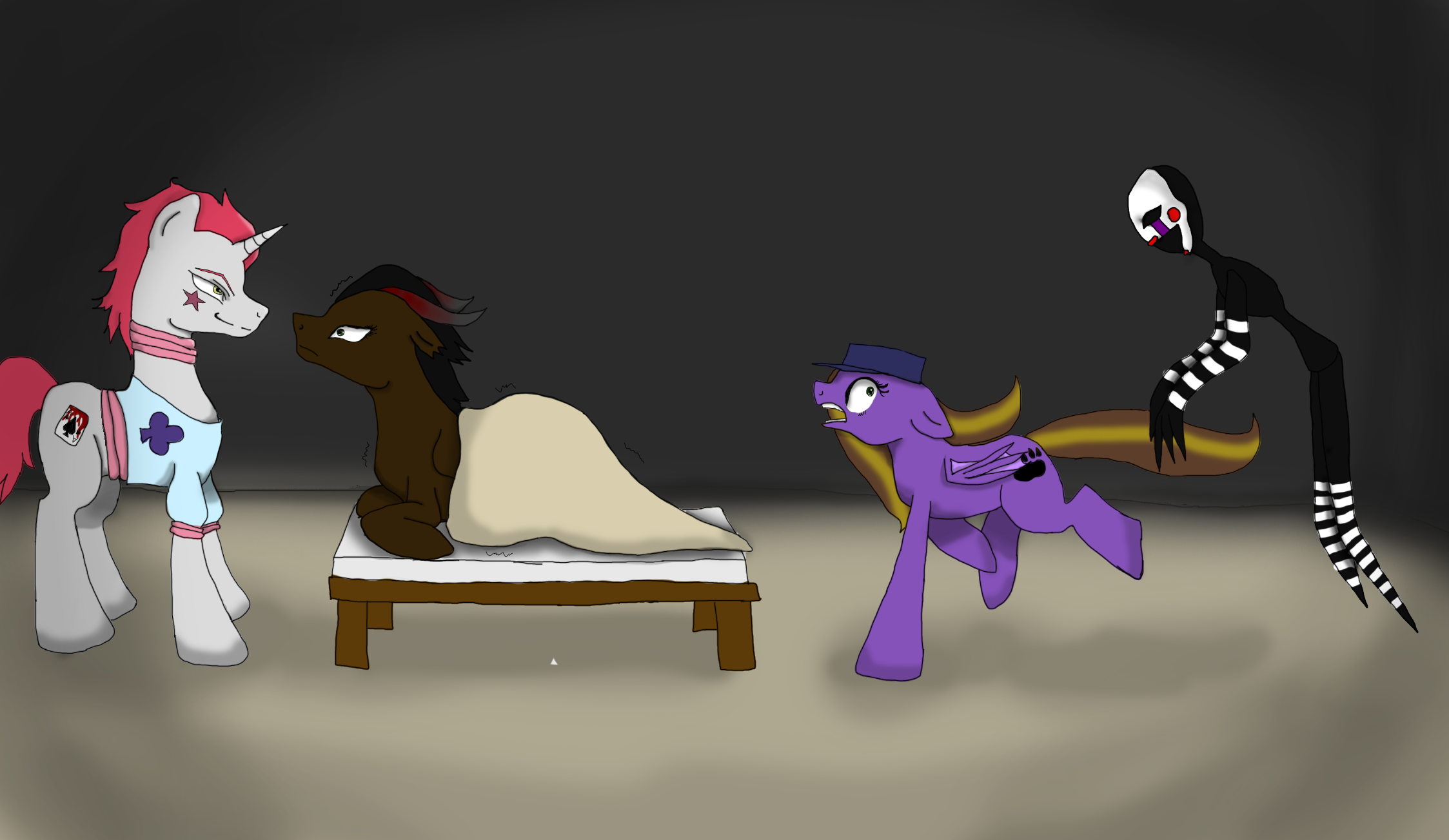 A stallion shaped figure lurked in the dark side of the room. Something wasn't right. He did something to Iza, and who knew what happened to---