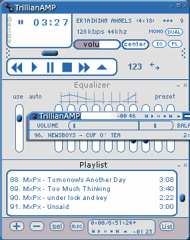 class and style, and most importantly, functionality. thanks so much for this skin it's a real breather from the original cordillera (sp?) style, which appears to be the only other decent skin made for trillian.