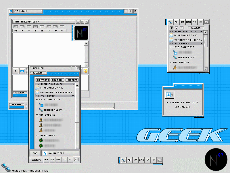 One last thing: There's a Trillian bug which is quite obvious in this skin. If you seem to have troubles with icons dissapearing. Just reload Trillian.