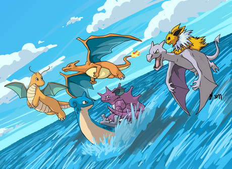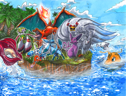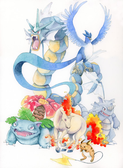 Waude! Flareon liekkiharjalla on vain aivan kutkuttava idea, ja teikäläisen visualisointi vie kyllä voiton kotiin. Liekkien hehkuvuus on tehty uskomattomalla tarkkuudella, ja kuumuuden voi tuntea. Ripaus sinistä taustassa toimii hyvänä vastapainona ylenpalttiselle keltaisen ja punaisen eri sekoituksille. On aina ilo nähdä näin huolella tehtyä vesiväritaidetta, mutta eipä teikältä voi muutakaan odottaa.