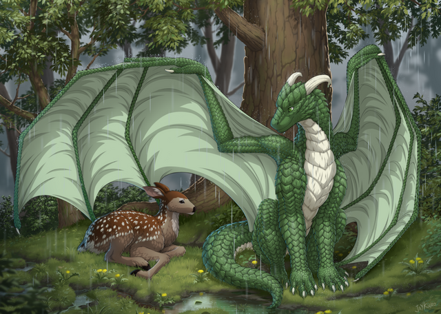 Finally, I like the you did not go for the common thing of attaching the wing shoulders to the front limb shoulders (though I will say they are a bit small to fly with - is it a gliding one?) and the burn/tear near the bottom is a nice touch. This deserved a place in my featured favourites, I love it that much.