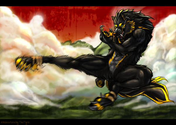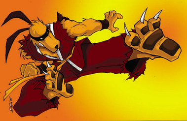 A character named after the Brazilian/African martial art.(ink, digital color, photo background)