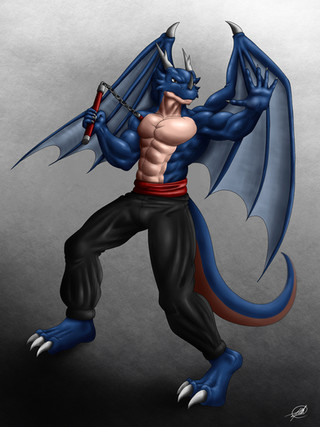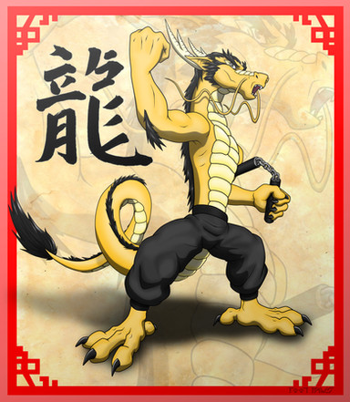 "Long Hu" is a dragon/tiger hybrid. Hated as a freak by both species, he learns martial arts to protect himself.(Rapidograph inks, Photoshop colors)