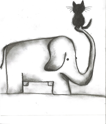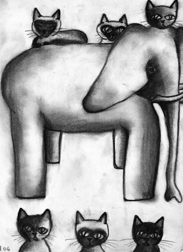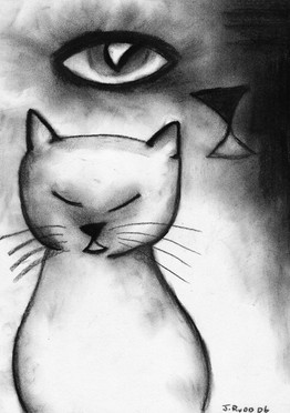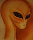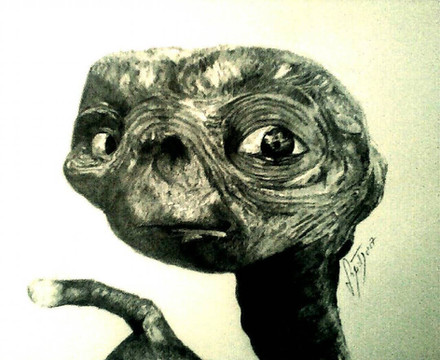 The alien is based off the movie "Communion". That movie freaked me out, when it peered over the wall looking in the master bedroom. I seriously had goosebumps. I added a scared cat for comic relief.Made in charcoal.Related content