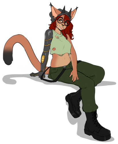 #anthro #axer #barrel #boots #che #chemical #cute #female #furry #hair #hand #kami #red #shoes #sitting #tail #therapy #jayaxer #axerindustries #veicht #hello