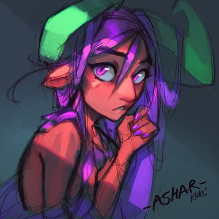 #axer #blood #blue #dragon #ears #eyes #face #gold #hair #horns #light #lighting #longhair #male #moody #neon #painting #pink #shock