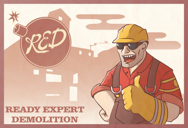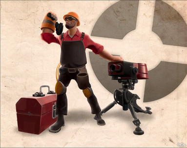 Made another painting for a spray, this time of the engineer. Oddly enough, I don't play a whole lot of engineer ,but I love sticking sprays behind people's stuff. Made it in the style of a vintage ad to fit in with the game.Dispenser was a bit of a pain to paint and I didn't paint the scan lines cuz it looked weird.