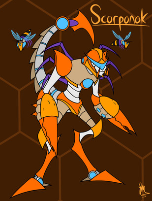 Scorponok is armed with claw-embedded missiles and Cyber-bee drones that act as his scouts, as well as using his claws and tail for melee weaponry. He also REALLY hates Waspinator, but most other Preds do anyway.