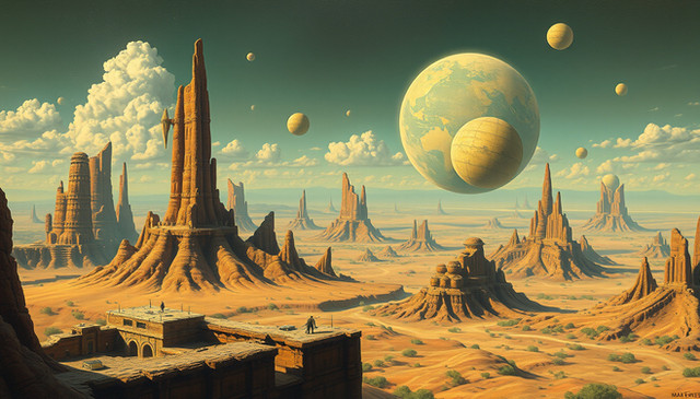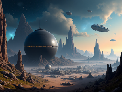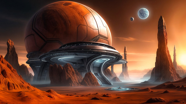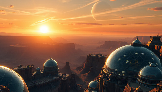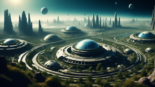#digitalart #wallpaper #scifi #architecture #ai #dreamup #conceptart #space #fantasyart #sky #ancient #biospheres #domes #future #moons #outpost #ruins #technology #geodomes #ai_art