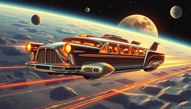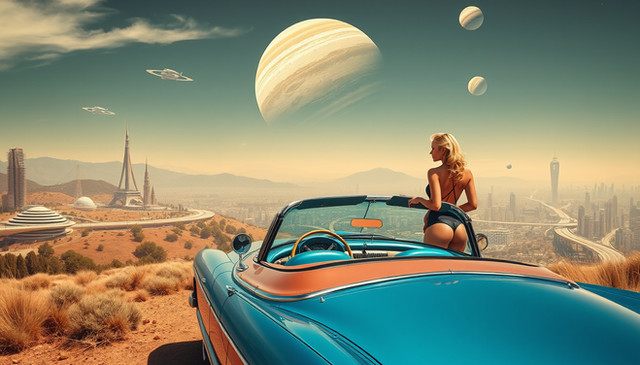 #digitalart #wallpaper #scifi #car #vehicle #space #beauty #fantasyart #ai #convertible #future #girl #moons #woman #dreamup #ai_art