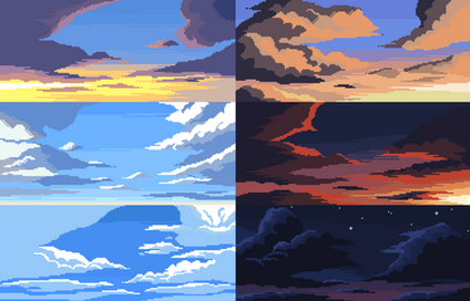Trying to get into some techniques of Pixel Art.I really like the dithering effects and here are some of the ones that I have found/created.
