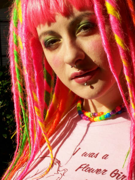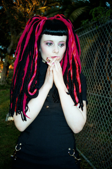 #black #dreadlocks #dreads #goth #makeup #pale #paleskin #piercings #pink #purple #gothicgirl