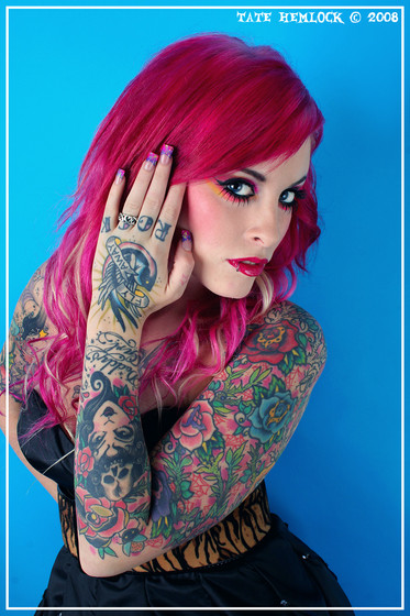 #checkered #makeup #piercings #pink #purple #red #tattoos #white #wildhair #tattoomodel